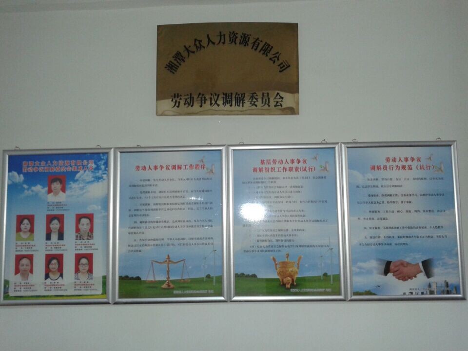 為了規范勞動(dòng)人事?tīng)幾h預防調解處理工作,維護社會(huì )和諧穩定,按照潭人社發(fā)【2014】29號文件要求,根據《中華人民共和國勞動(dòng)爭議調解仲裁法》等法律法規精神,湘潭大眾人力資源有限公司于2014年6月13日調整規范了勞動(dòng)爭議調解委員會(huì ),并對委員會(huì )成員、工作程序、工作職責、行為規范進(jìn)行了上墻公示。