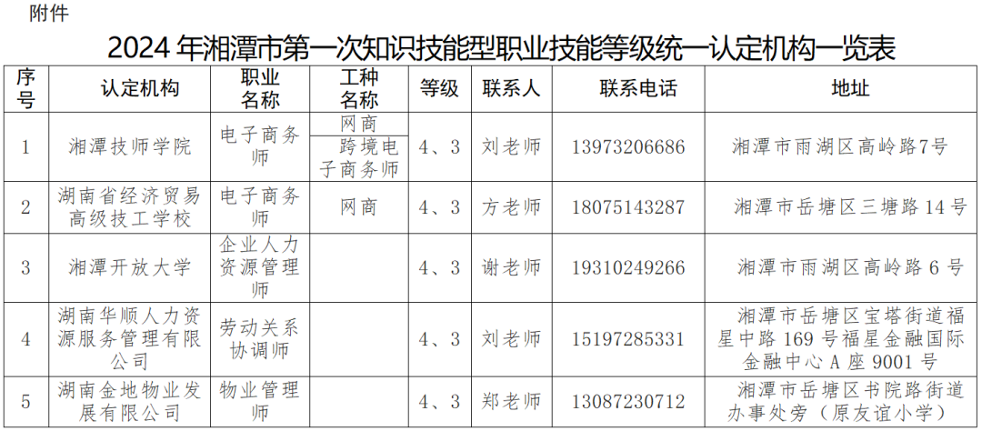 為進(jìn)一步提高全省技能人才評價(jià)質(zhì)量,提升職業(yè)技能等級證書(shū)含金量,省人社廳定于4月實(shí)施2024年第一次知識技能型職業(yè)技能等級統一認定,湘潭共有5家職業(yè)技能等級統一認定機構,可方便和服務(wù)廣大勞動(dòng)者就地就近參與認定。